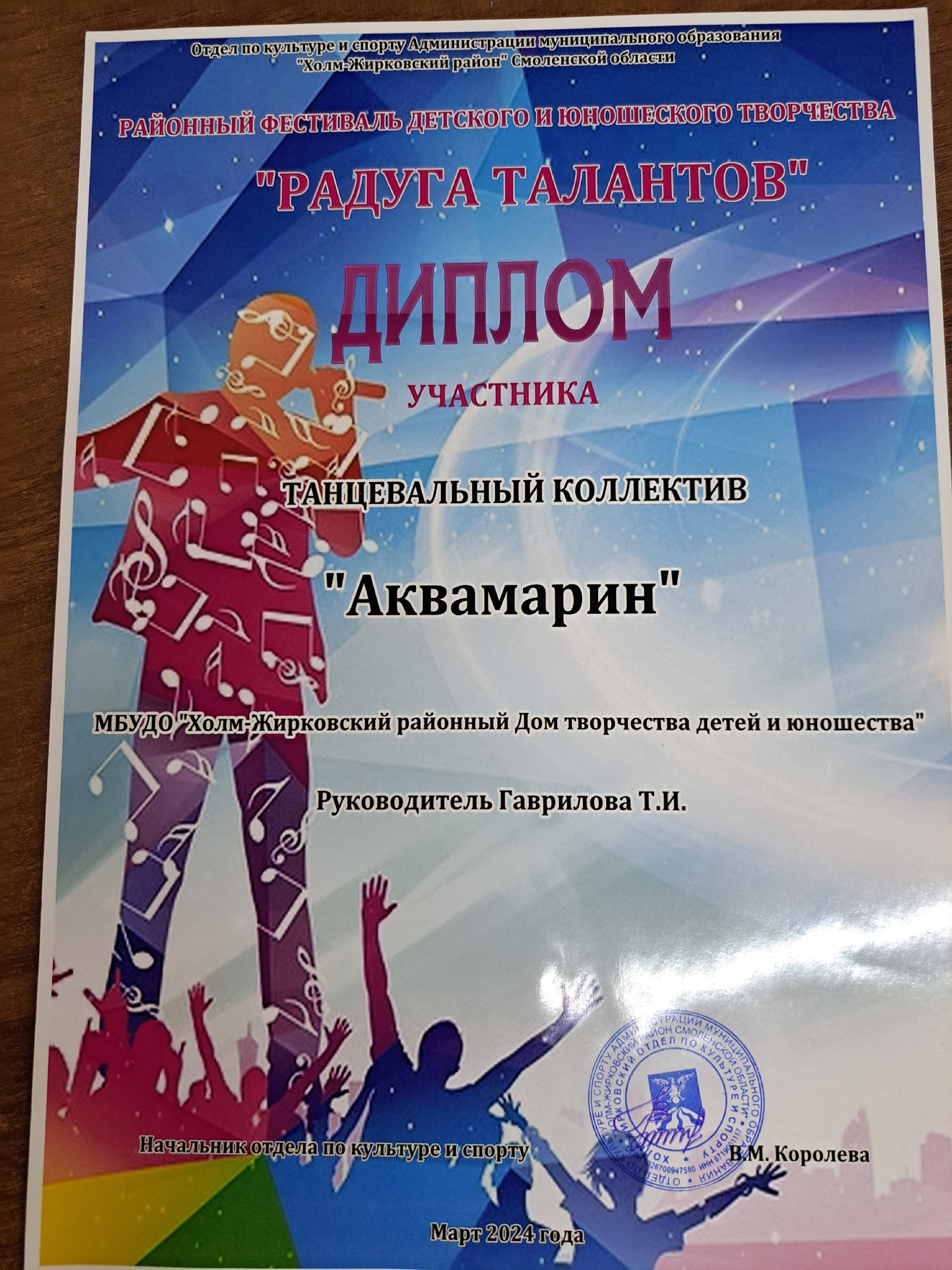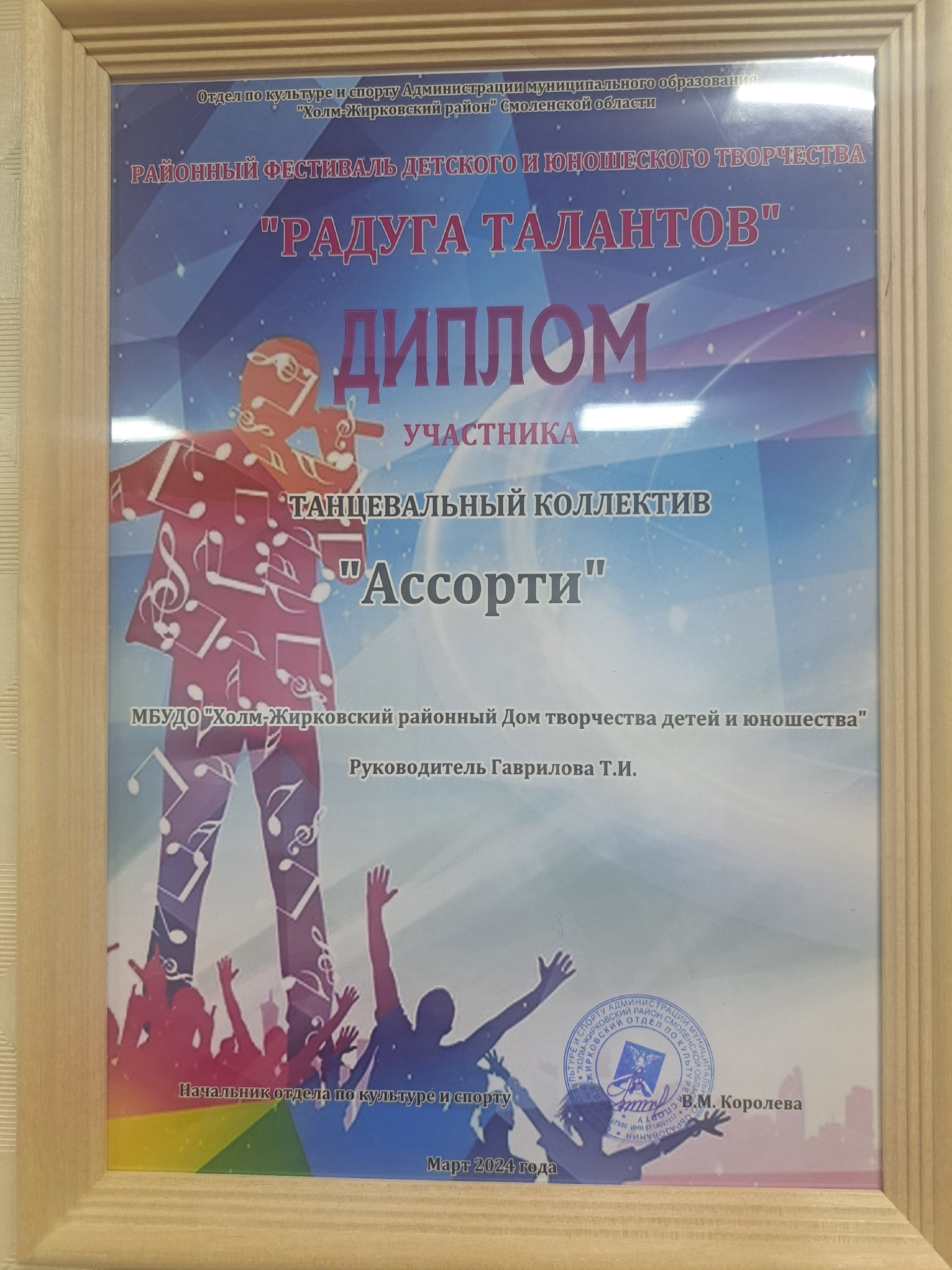 1. Участие в муниципальном конкурсе "Радуга талантов", 2024 г. Файл Файл